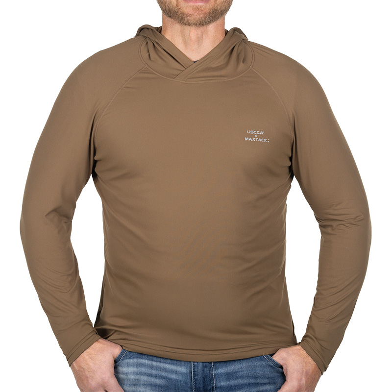 Lightweight fabric and breathable construction help keep you cool and comfortable during extended time in the sun. Built with stretch for ease of movement, it provides dependable SPF 50 protection while maintaining a comfortable, athletic fit. Subtle co-branded logos on the chest add a clean finishing detail, reflecting a shared commitment to preparedness and performance whether you’re at the range or spending time outdoors.
