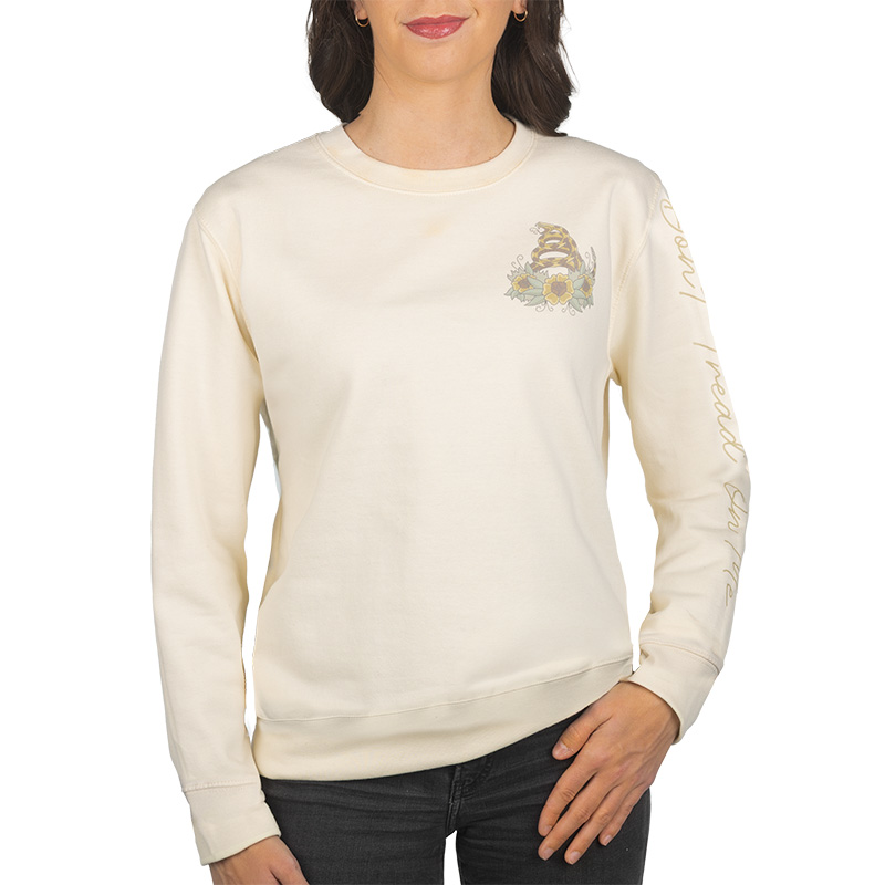 Designed with graceful strength and modern style, this piece offers a softer expression of independence and resolve. A floral-accented Don’t Tread on Me Gadsden snake rests on the left chest, while elegant cursive lettering runs down the sleeve, reinforcing a message of quiet confidence. Blending femininity with purpose, this design serves as a reminder that freedom is worth protecting—on your own terms.