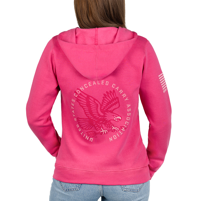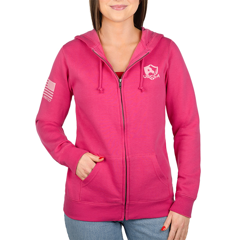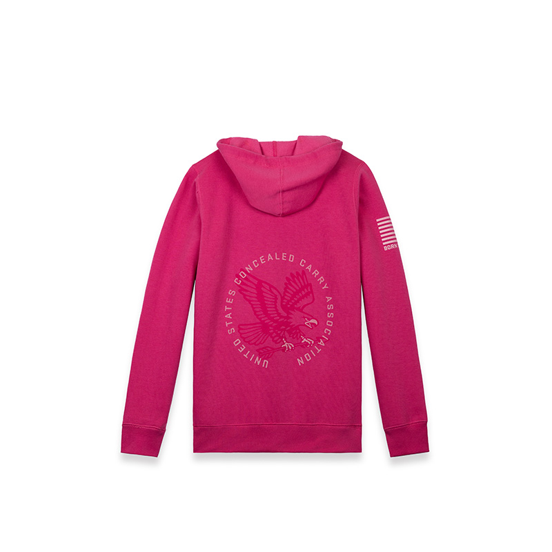 Designed with a feminine touch and confident style, this piece reflects strength, independence, and a deep respect for freedom. A USCCA logo rests on the left chest, while the right sleeve carries the “Born to Protect” message beneath the American flag. Turn to the back to find a striking eagle graphic—long a symbol of courage, vigilance, and liberty—serving as a reminder that protecting our values is both a right and a responsibility.